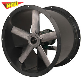 Axial fans are made with spark resistant, cast aluminum airfoil axial impeller. Heavy duty welded steel drum housing with welded angle ring flanges offers aerodynamically efficient performance. TEFC industrial duty motor powers adjustable pitch fan blades. Tube axial fans are mountable in ductwork in any position. Tested to ANSI/AMCA standards. Conforms to NEMA standards. Gray enamel finish. Direct Drive Fans offer simple maintenance without any belts or pulleys to replace. Includes externally mounted, wired junction box. Belt Drive Fans feature V-belt driven motor that is mounted outside of airstream to provide low-speed operation. Made using cast iron fan sheaves and oil and heat resistant fan belts. Steel fan shaft is sealed with self-aligning pillow block ball bearings for low maintenance.